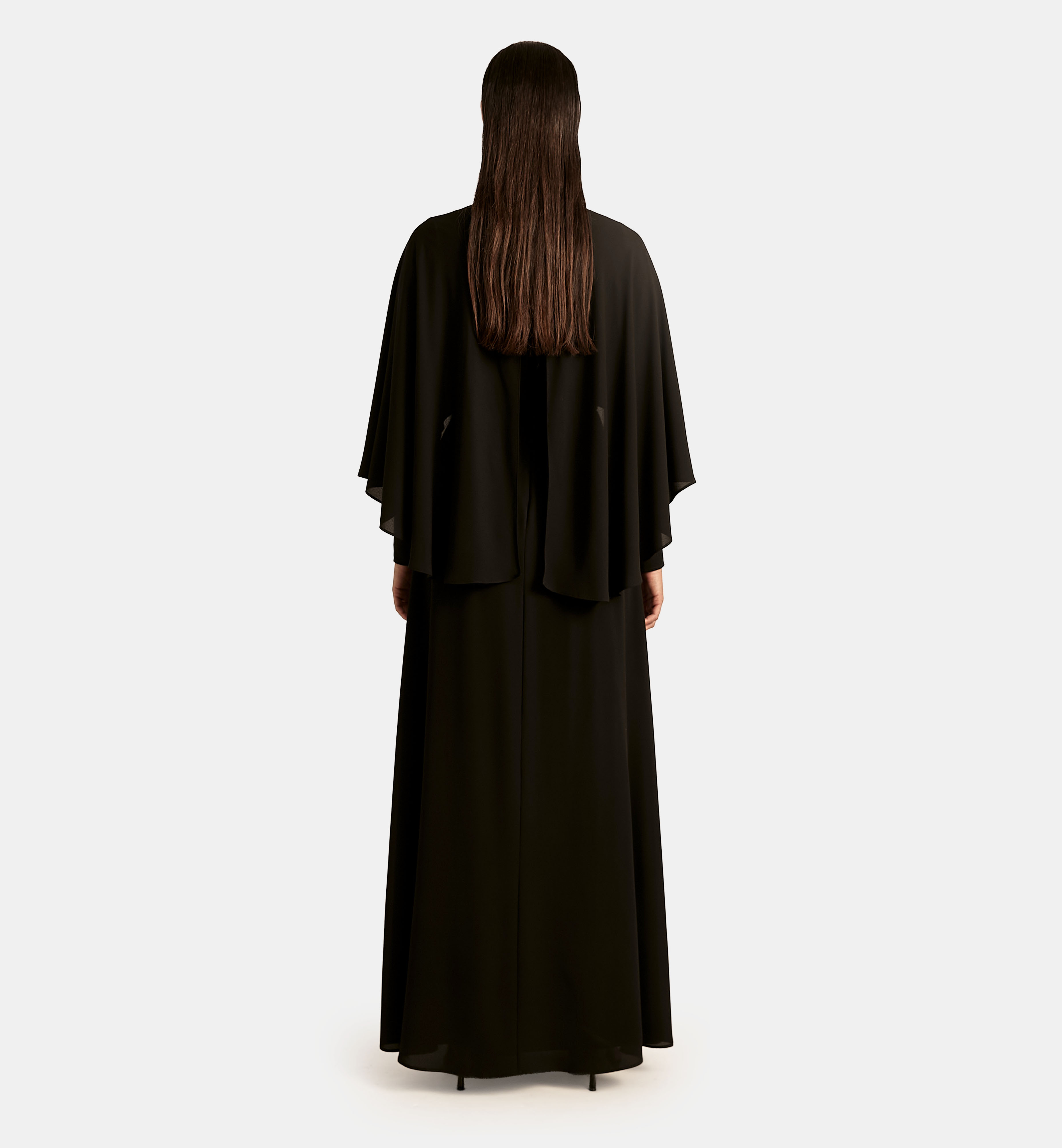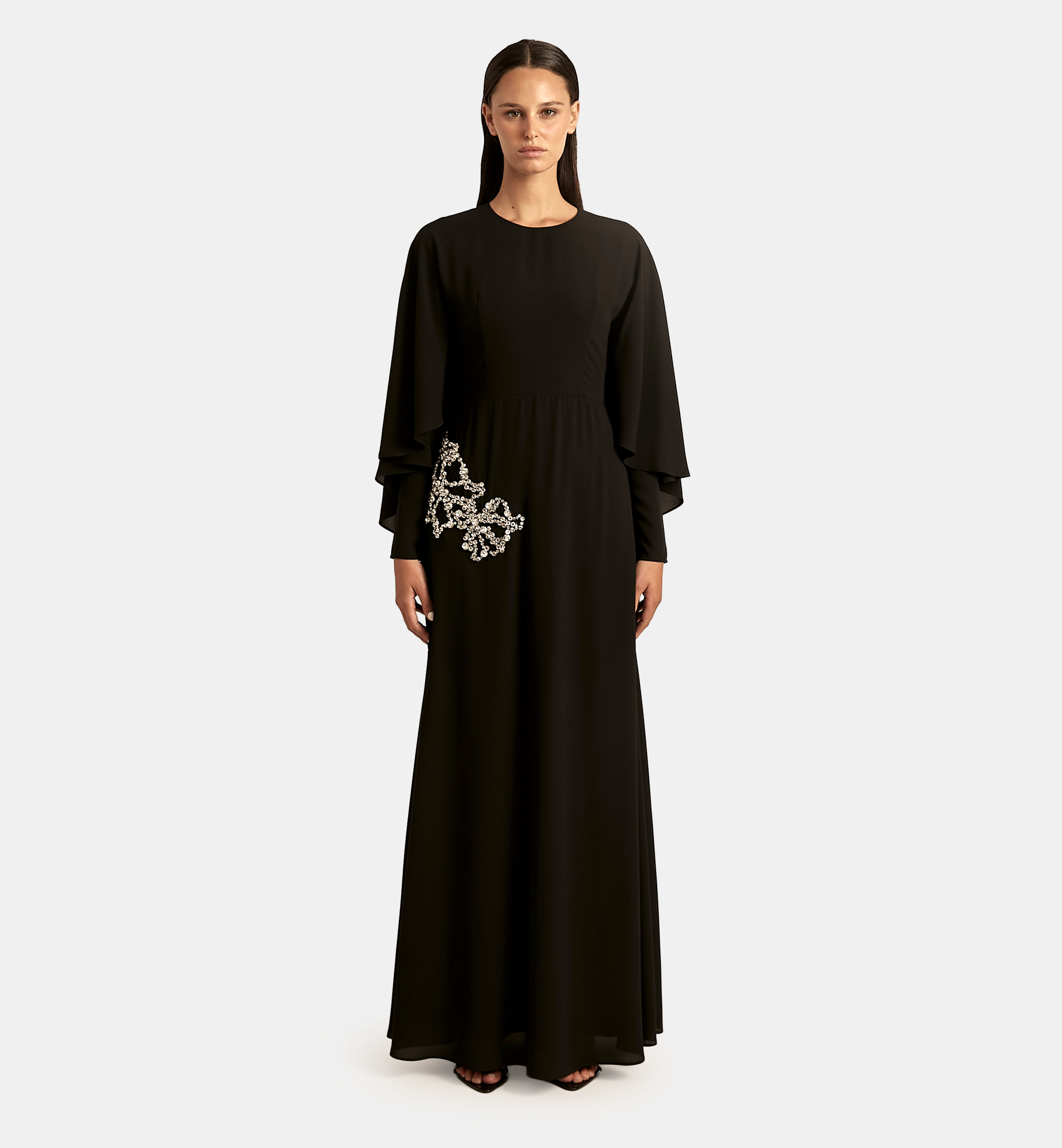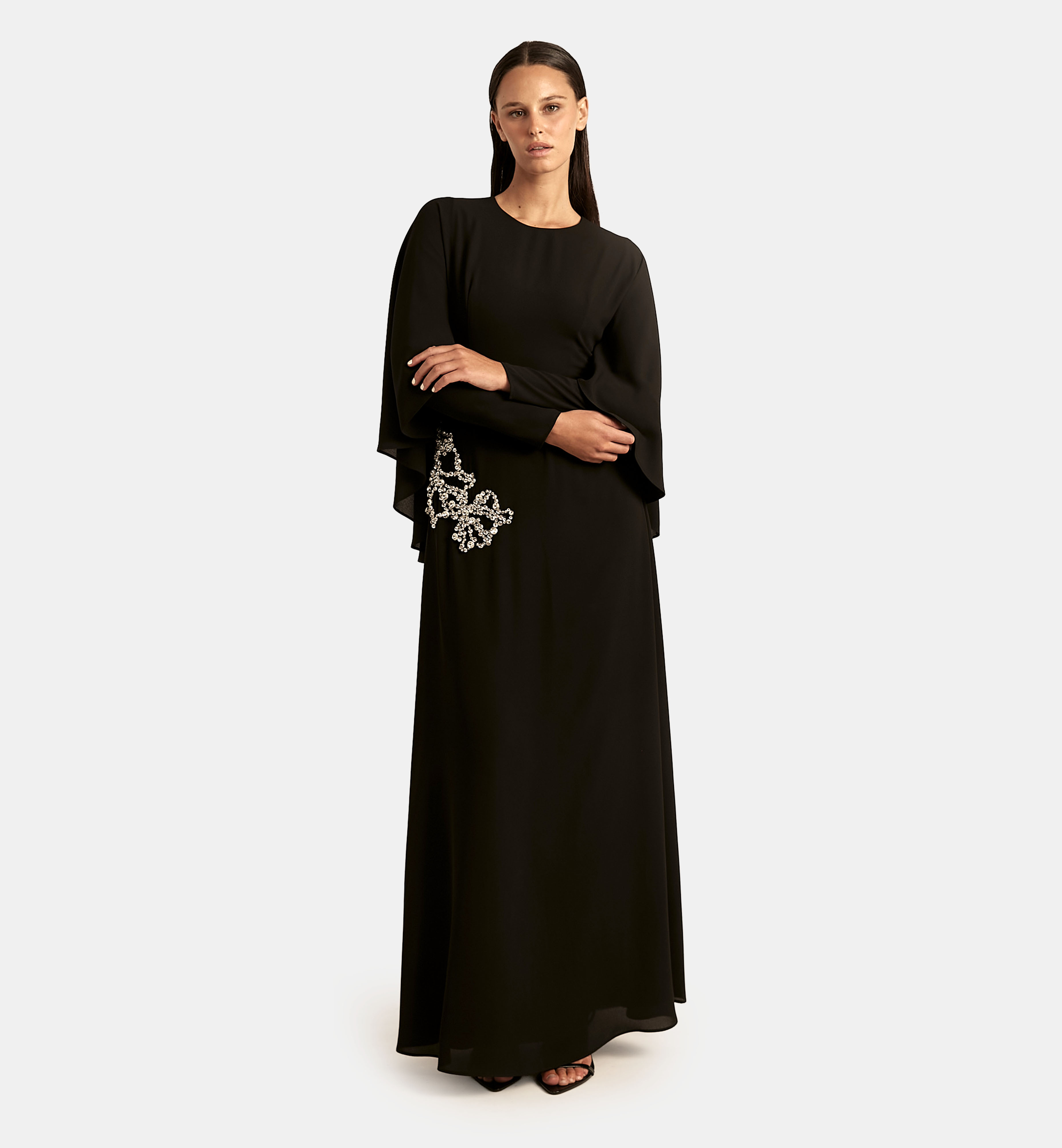 Crepe Cape Dress with Crystal Embellishment maxi, Black